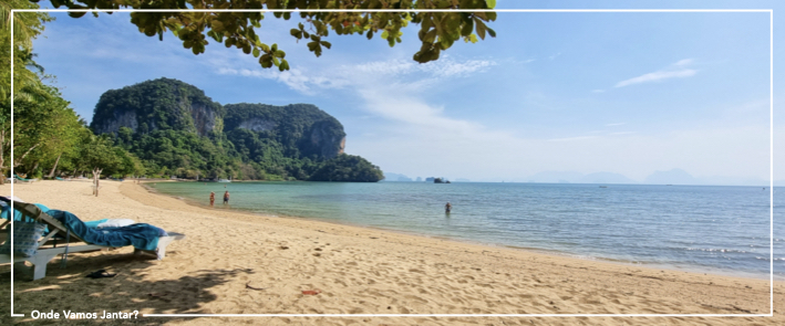 Railay Beach tem um vibe muito calmo, com turistas jovens, numa onde hippie, malta que vai descansar e aproveitar a praia, sem grandes confusões ou festas. Aqui lembrámo-nos muito de Pai (no Norte), porque o vibe é semelhante, ainda que com diferenças a nível geográfico. Optámos pelo View Point Hotel que fica ao pé do cais, mas que fica a 10m a pé da praia principal.