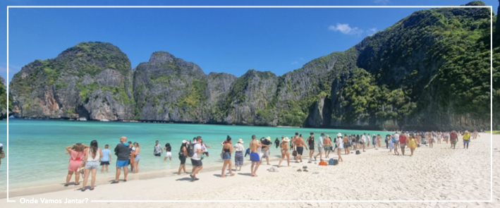 Por exemplo, Maya Bay é uma zona lindíssima, a praia em si tem água límpida e uma envolvente natural muito bonita. Mas a procura desenfreada de turistas fez com que proibissem os banhos, então temos centenas de turistas a atropelar-se para tirar fotos com os pés dentro de água. A foto em si é bonita, mas o “making off” é assustador…