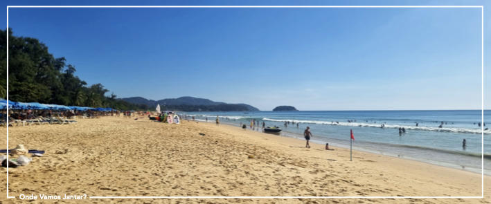 E, finalmente, a zona principal de Phuket: Patong Beach. Bom, a praia em si é razoável, embora Karon Beach seja melhor. Não fomos às praias que dizem ser mais bonitas, como Freedom Beach, porque percebemos que se paga o acesso à praia. Mas no centro de Patong, desde que não fiquem mesmo em frente à Bangla Walking Street, ficam bem.